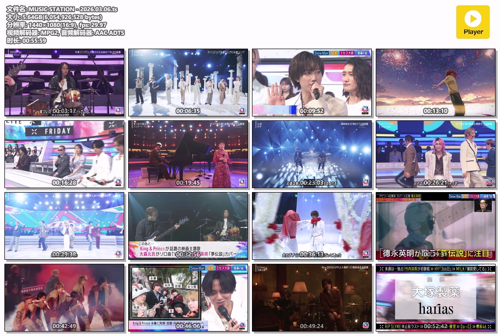 Snow Manが最新2曲を披露 ▽Mrs. GREEN APPLEの大森元貴がソロとして話題の映画主題歌を初披露 ▽復活レミオロメンが名曲「3月9日」を17年ぶりに披露 ▽ハンバート ハンバートが初出演で話題の朝ドラ主題歌を披露 ▽King & Prince・ゆず…最新曲を披露 ▽德永英明がスターダスト☆レビューの名曲「夢伝説」をカバー