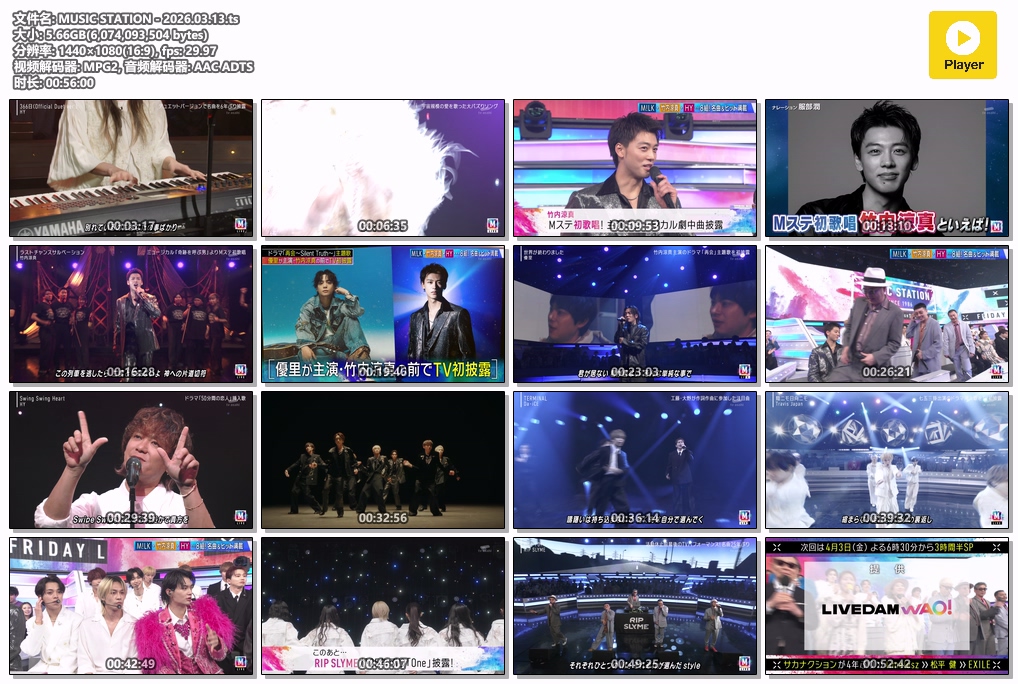 俳優・竹内涼真が話題のミュージカル楽曲をMステ独占歌唱! ▽HYが名曲「366日」を6年ぶりに披露 ▽RIP SLYMEが活動休止前ラスト出演!名曲「One」を25年ぶりに披露 ▽M!LKが大ヒット中の「爆裂愛してる」 ▽優里が竹内涼真主演「再会」のドラマ主題歌を初披露!本人の前で熱唱 ▽Travis Japan・Da-iCE・櫻坂46…最新曲が続々!